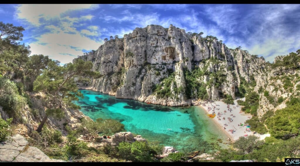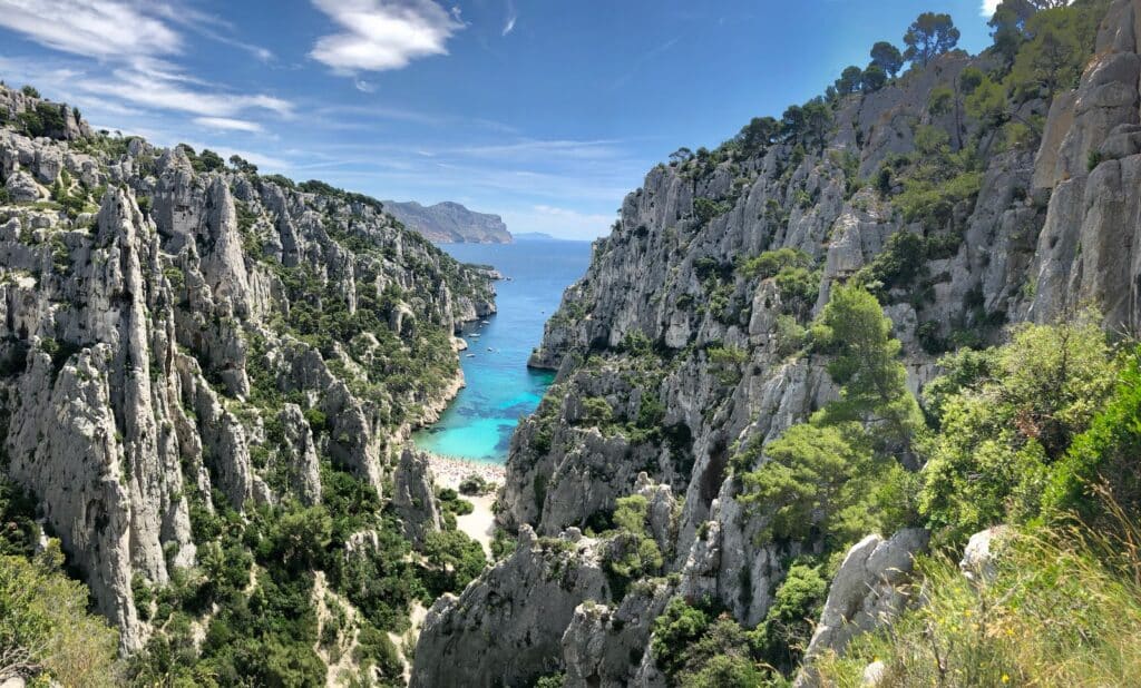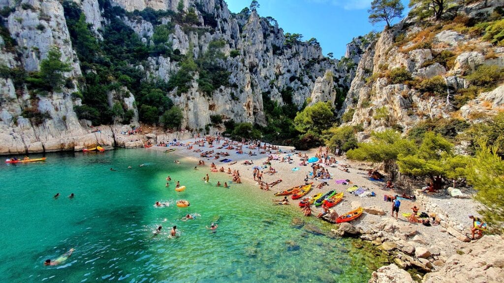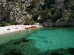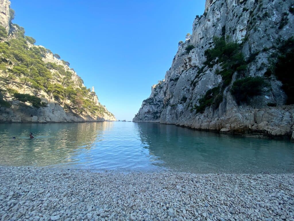 La calanque d’En-Vau de Marseille est située entre de hautes falaises. Cassis est la ville la plus proche mais cette calanque appartient à Marseille. Au milieu des pins, elle est l’une des plus belles calanques de la Méditerranée. Elle a l’avantage d’être abritée du mistral. Ceux qui aiment le soleil viendront plutôt le matin car l’ombre arrive très vite à cause des hautes falaises.