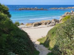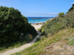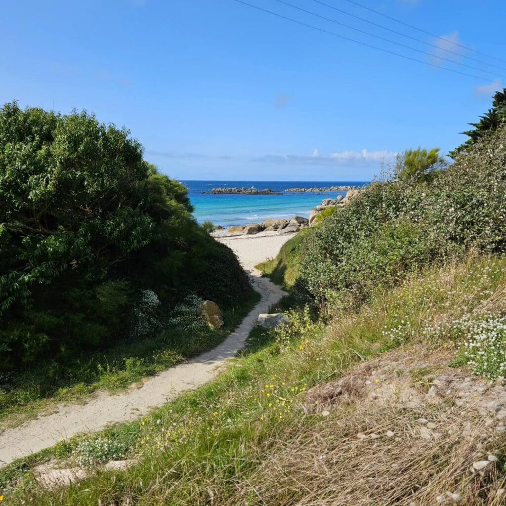 La crique de Porz Striz à Cléder est une petite niche de sable et de verdure contrastant avec l’immensité des plages voisines n’est courue que des habitués (et des visiteurs de bord-de-mer.com désormais) et c’est tant mieux ! Elle bénéficie à la fois de la tranquillité due à l’absence de toute publicité et de la proximité des animations et équipements des plages plus connues aux alentours. Ses abords assez élevés la protègent des vents et offrent un pare-soleil partiel. Végétation, sable fin et rochers environnants parachèvent le tableau.