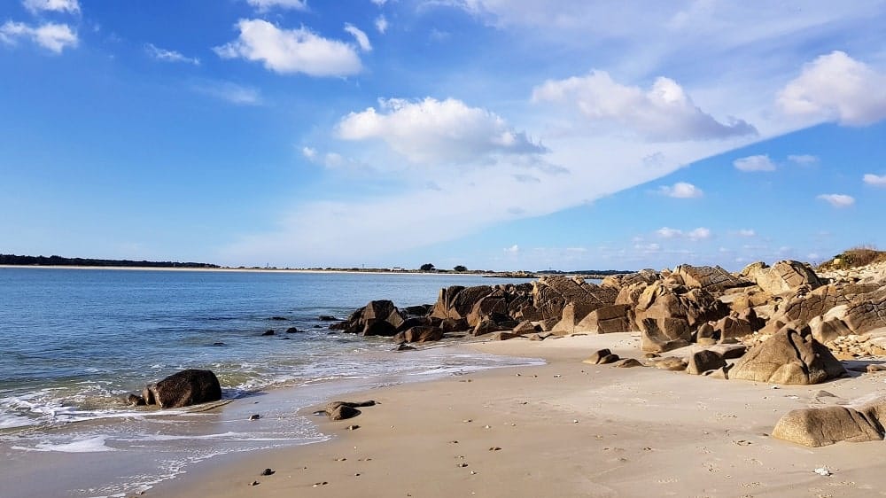 Arrivé à la grande plage de Saint-Colomban, on ne se doute pas qu’après les rochers, de nombreuses criques, petites et grandes, se succèdent et proposent une exposition sud-ouest, un plan arrière sauvage et une vue imprenable sur la presqu’île de Quiberon, de l’autre côté de la baie de Plouharnel. Un petit effort de marche récompensé par un beau panorama et quelques libertés, notamment vestimentaires. On y accède en empruntant le sentier des Douaniers depuis la plage de Saint-Colomban (Boulevard de l’Océan).