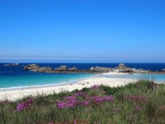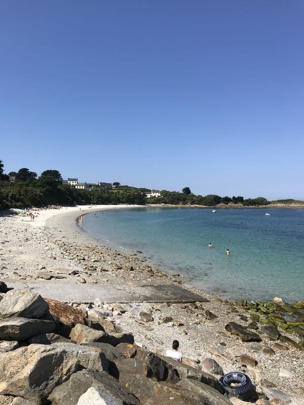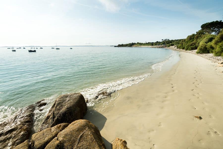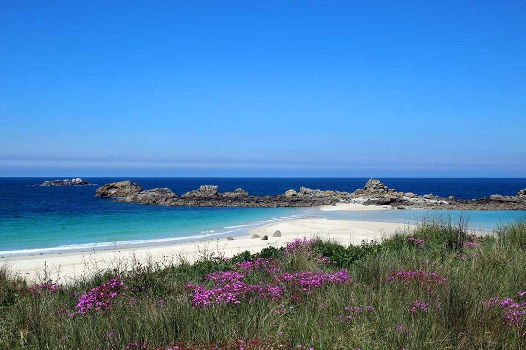 Pas si facile de la trouver cette Grande Grève de Roscoff. Juste avant le rond-point d’entrée de Roscoff, sur la D 769, prenez à droite la rue tortueuse de la Grande Grève, jusqu’au bout. Là on découvre une grève scindée en deux : à droite galets, à gauche vaste plage de sable. Bien orientée (sud-est), cette partie sableuse est large à marée basse et permet tous les jeux de plage, mais réduite à la portion congrue à marée très haute. Plage à conseiller à marée descendante donc, plutôt jusqu’à 15 heures, et surtout pour les familles.