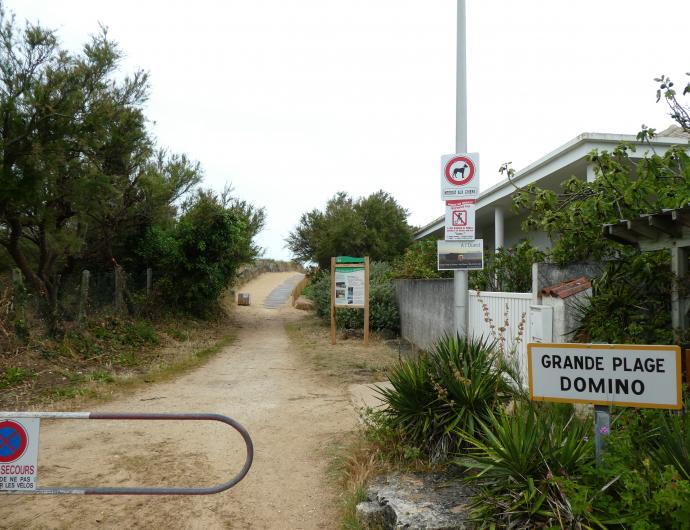 Depuis le centre de Domino, cette plage est accessible par l’avenue de l’Atlantique. On y trouve un petit parking. On peut également y accéder par le chemin du Râteau. Mais pour la baignade nous vous conseillons plutôt d’utiliser l’accès par la plage des Bonnes.