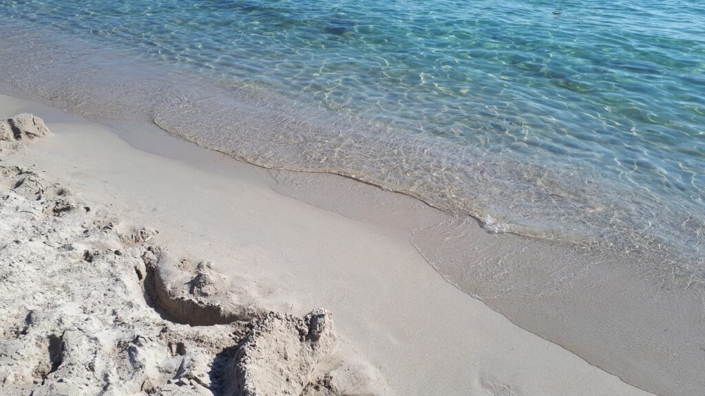 Revêtement de plage : Sable fin et lumineux. Fond marin – sable fin .