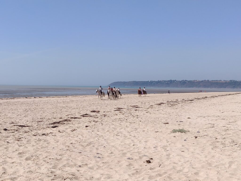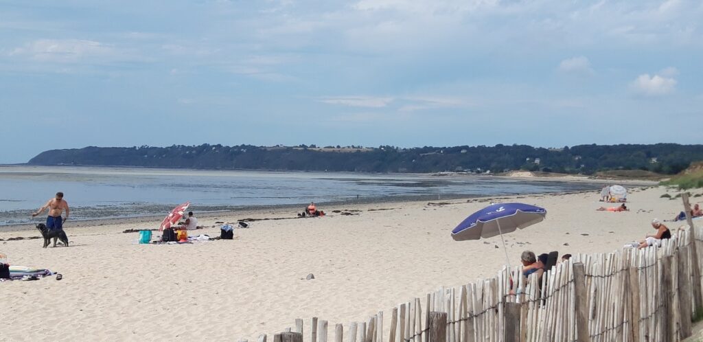 Plage sauvage avec un petit kiosque à son entrée, on s’y baigne seulement à marée-haute (baignade non surveillée). A marée-basse, la mer se retire très loin (les fonds sont quasiment plats dans la baie du Mont St Michel). Des dunes bordent la plage, cependant l’accès y est interdit (dangereux, risques d’éboulements).