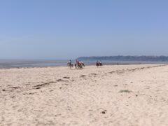 Dans la baie du Mont-Saint-Michel se trouve la plage Dragey-Ronthon avec une vue directe sur le Mont-Saint-Michel côté sud.