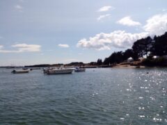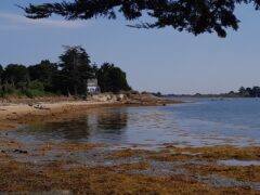 La plage de Fontaine Varia sur l’ile d’Arz est la plage la plus proche du bourg. On y accède directement en prenant la Grande rue puis le chemin de la dite fontaine très importante par le passé car une île n’est habitable que pourvue d’une source d’eau suffisante. Plage à l’est, appréciable le matin mais aussi l’après-midi par forte chaleur car les arbres y portent une ombre rafraîchissante. Le sable y est généreux et de bonne qualité. Vu le nombre de bateaux au mouillage, l’abri doit être bon également. C’est une plage agréable, esthétique, mais aussi pratique car il suffit de faire 200 m pour trouver épicerie, bars et restaurants, au bourg. Les chiens y sont tolérés.
