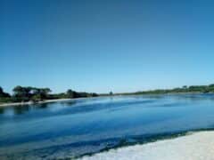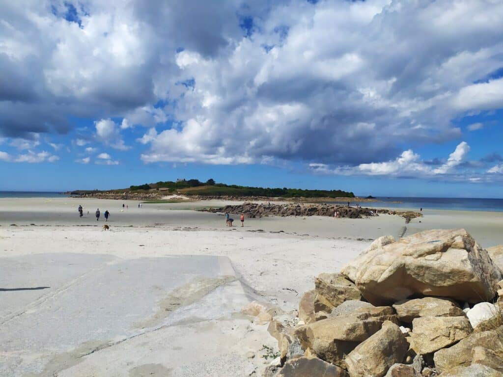 Certaines plages de rivière cumulent les avantages d’un sable continuellement apporté par la mer et d’une eau perpétuellement apportée par la rivière. C’est ici le cas avec la plage de Kerbrat. Même à marée basse, l’estuaire de l’Horn, qui sépare Plougoulm de Santec, est d’une beauté sauvage. On a ici le côté sauvage en effet mais un petit bourg avec un bar-restaurant à proximité. Les oiseaux marins aiment le lieu. Un lieu qui fascine immédiatement, de même que toute la pointe de Toul an Ouch, ses plages et vestiges néolithiques. De plus, cette plage comme les trois autres de Plougoulm est autorisée aux chiens. Et comme les trois autres, elle est très différente selon la marée. Plus agréable à marée haute, elle change juste la nature de son charme à marée basse.