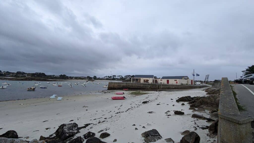 La plage de Korejou Port à Plouguerneau est petite par la taille, mais grande par les activités nautiques qu’elle propose. Au bout de la presqu’île de Pen Enez, le port de Korejou est doté de deux petites plages de part et d’autre de sa jetée. A droite, la cale permet le lancement de tout ce qui flotte et qui vient principalement du centre nautique adjacent : monocoques, dériveurs, planches… Ou encore de tout ce qui plonge. Mais on y vient aussi pour les plaisirs non nautiques car on est très bien protégé des vents dominants. A gauche une autre petite crique permet de contempler le large en toute quiétude entre deux rochers.
