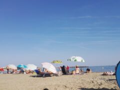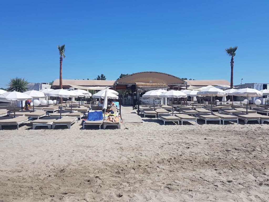 Infrastructure : Chaises longues et parasols. Bar / Restaurant de plage. Douche. Toilettes.