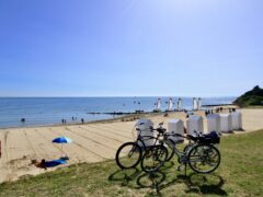 Environnement : Dans le village, routes et immeubles jouxtant la plage .