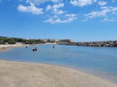 La plage de la Corniche de Sète se situe au départ de la promenade de la Corniche, à proximité du canal des Quilles et du stade de Sète. Cette belle plage de sable est composée de deux anses (environ 200 mètres de sable pour chacune) et est protégée par une grande digue.