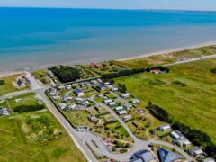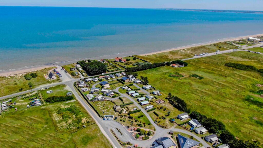 Environnement : Dans le village, routes et immeubles jouxtant la plage .