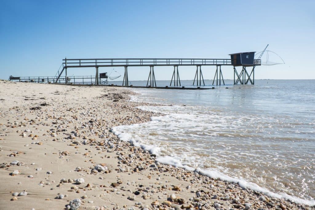 A mi-chemin entre le Collet et le début du marais de Lyarne, la plage de Lancastria est l’une des plus sauvages du secteur tout en étant facilement accessible en voiture. Ici les paysages sont dominés par le nombre impressionnant de carrelets sur la plage (un tous les 30 mètres) créant ainsi une multitude de petites plages séparées par des structures en bois. Hélas, la baignade est seulement possible à marée haute, la mer se retire très loin dans le secteur laissant une vaste étendue de vase. Agréable pour se balader ou faire des châteaux de sable … pour la baignade c’est une autre histoire. A noter que cette plage est l’une des rares à être autorisée aux chiens toute la journée.