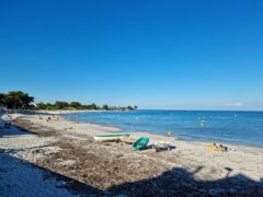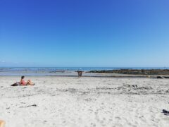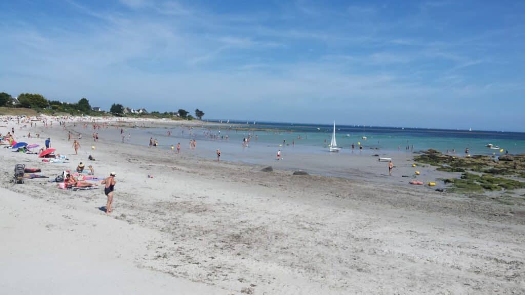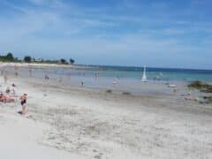 Conditions de baignade : Zone de marée longue. Augmentation de la profondeur – en douceur. Quelques bateaux près de la plage. .
