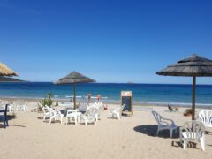 Infrastructure : Chaises longues et parasols. Bar / Restaurant de plage. Douche. Toilettes. Vestiaires de plage.