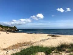 La Plage de Porz Milin à Locmaria-Plouzané (ou plage de Porsmilin) est une mignonne petite crique, orientée plein sud, propre, surveillée et qui se pique d’être petit spot de surf en plus. On appréciera aussi son petit côté sauvage et son arrière-plage herbeuse. Comme nous n’avons pas aperçu de surfeur, nous avons demandé l’avis d’un spécialiste : « Il faut au moins deux mètres de houle avec une orientation sud-ouest pour que ça rentre ici. Et un vent de nord pour que ce soit Off-shore. C’est un spot de repli avant toute chose. » Les connaisseurs apprécieront.