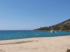 Conditions de baignade : Augmentation de la profondeur – modérée. Certaines zones protégées des vagues. Bateaux près de la plage – nombreux. .