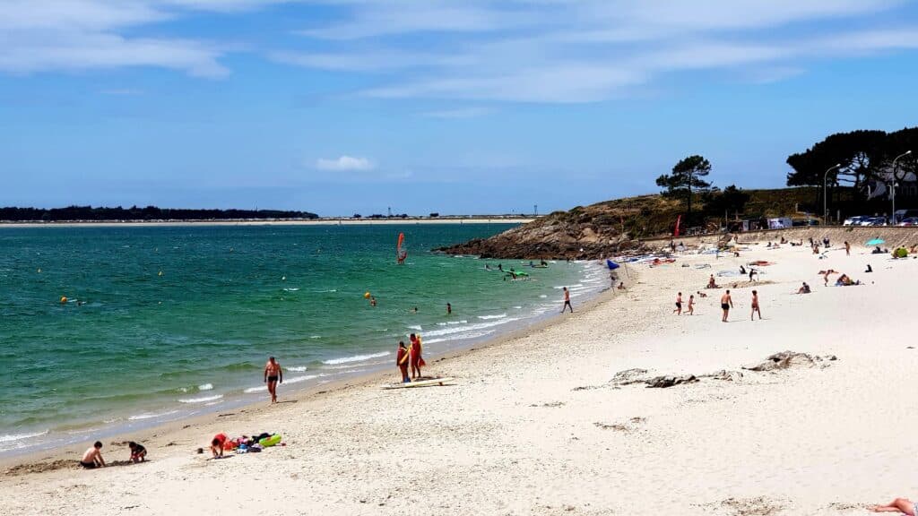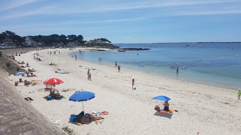 La plage de Saint Colomban de Carnac est la plage la plus à l’ouest de la station balnéaire. Face à la presqu’île de Quiberon qui semble très proche, cette plage offre 500 mètres de sable. Elle dispose d’un poste de secours pendant l’été. Sur la partie gauche, on trouve de nombreux rochers. L’extrémité sur la droite est réservée pour les sports nautiques non motorisés (voile, kayak, …). L’accès à la mer est possible à marée basse dans le centre de la plage. Poste se surveillance en été de 13h à 19h.