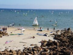 Conditions de baignade : Augmentation de la profondeur – en douceur. Certaines zones protégées des vagues. Quelques bateaux près de la plage. .