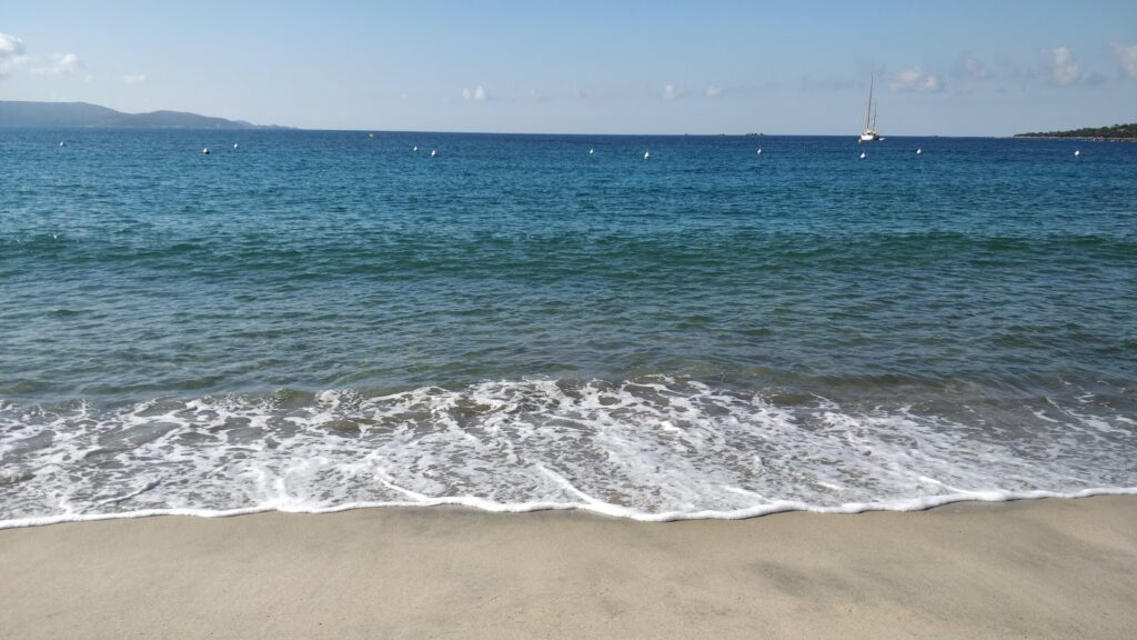 Revêtement de plage : Sable fin et lumineux. Fond marin – sable fin .
