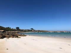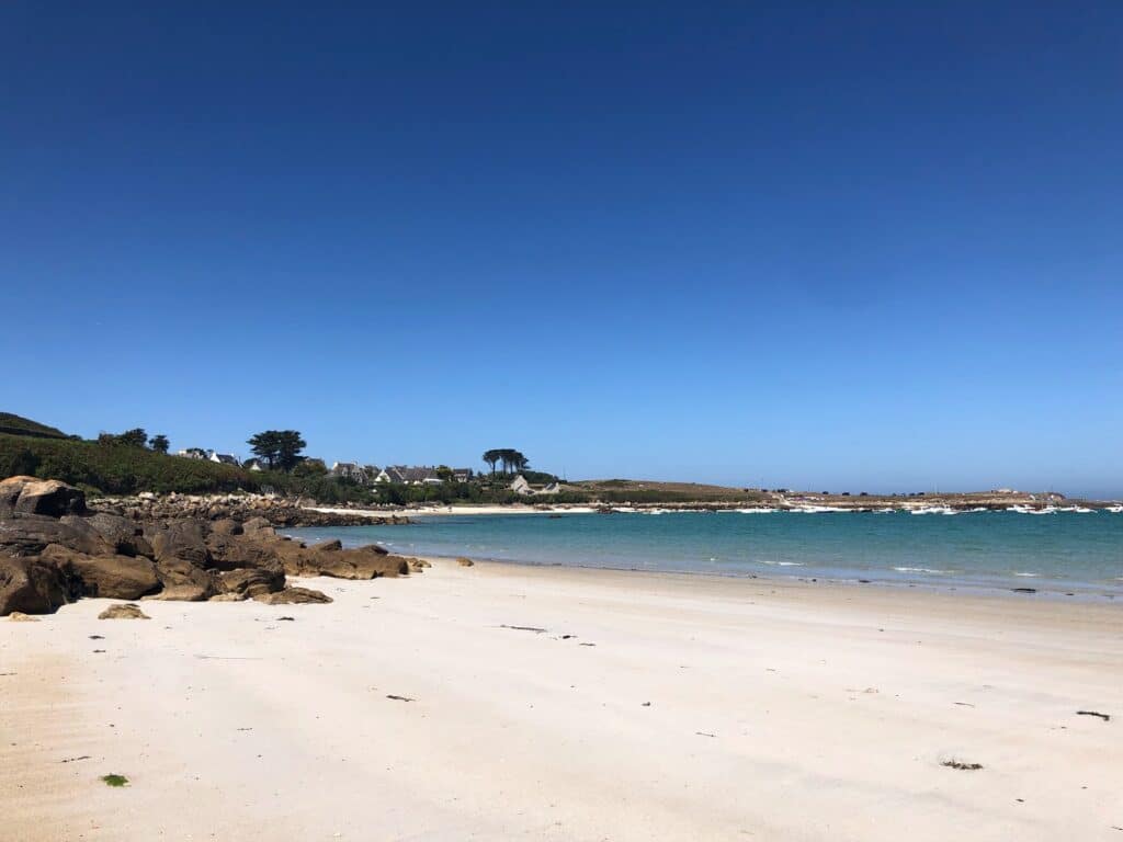 Sur les trois plages au nord de Landunvez, celle de Tremazan n’est pas la moins agréable. Elle est située en face du joli port de Portsall, tristement célèbre pour avoir été, en 1978, l’épicentre de la catastrophe de l’Amoco-Cadiz. Plus aucune trace tangible de souillure désormais. Le rivage a retrouvé ses contours de la Bretagne nord qu’on aime : hameaux dispersés, landes, routes tortueuses, flore et faune préservées. Concernant la plage elle-même, elle est très bien abritée des vents dominants (sud-ouest), son sable est très fin et blanc et le paysage invite à la contemplation. C’est tant mieux car les activités possibles, hormis la pêche et les jeux de plage, sont limitées. On ne peut non plus y amener une embarcation, sinon par la mer. Côté gauche, au niveau de la pointe, on trouve une seconde petite plage, la crique de Beg ar Galeti.
