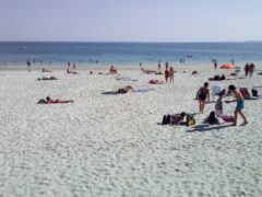 Conditions de baignade : Augmentation de la profondeur – modérée. Certaines zones protégées des vagues. Quelques bateaux près de la plage. .