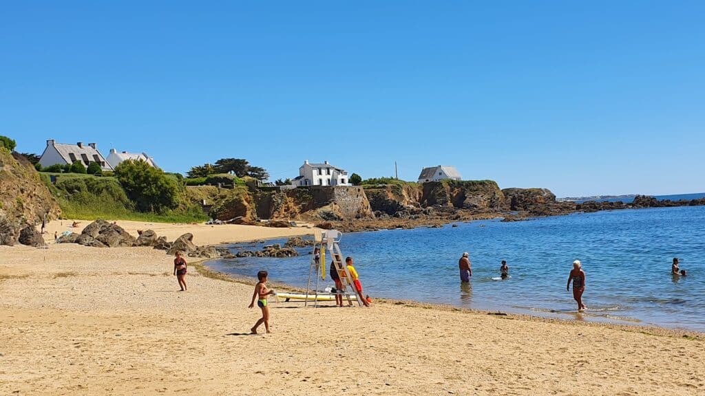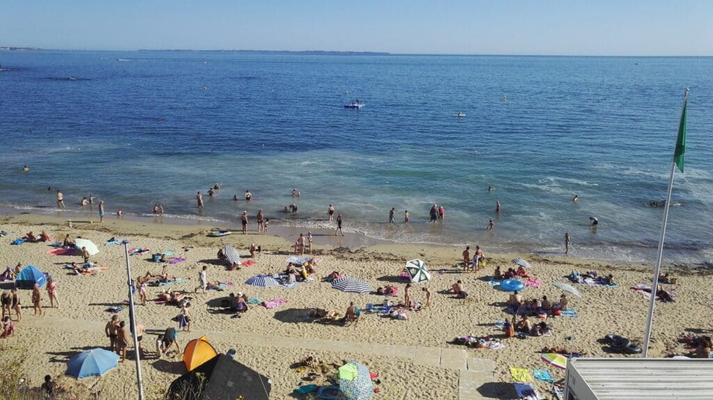 Conditions de baignade : Augmentation de la profondeur – modérée. Certaines zones protégées des vagues. Quelques bateaux près de la plage. .