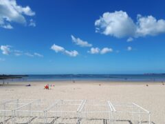 Conditions de baignade : Parfait pour nager. Zone de marée longue. Augmentation de la profondeur – modérée. Certaines zones protégées des vagues. Bateaux près de la plage – très peu. .
