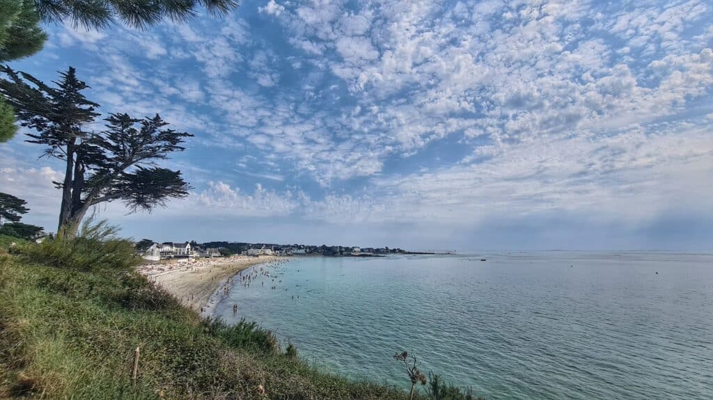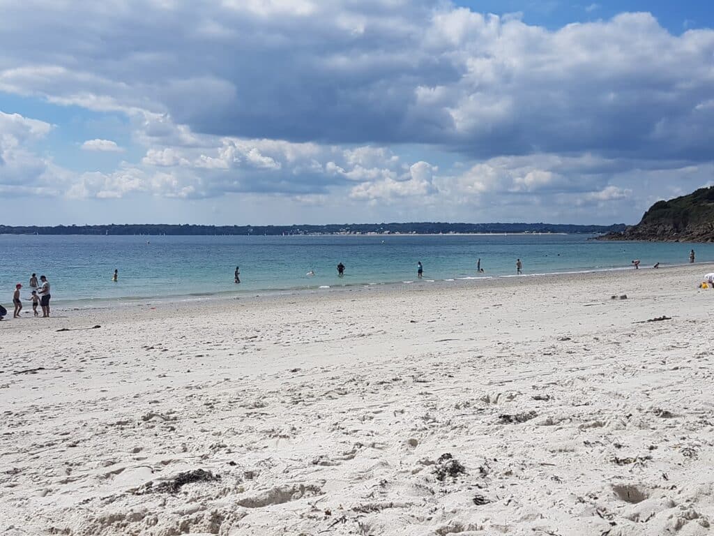 La plage des Sables Blancs à Concarneau est la plage la plus familiale et l’une des plus grandes (500 mètres de long à marée basse). Elle est surveillée en juillet et août et des activités pour les plus jeunes y sont organisées. La partie nord est la plus agréable et la plus fréquentée. La partie sud disparait à marée haute. On trouve un centre de voile (location de matériel) et quelques commerces à proximité (restaurants, cafés, …). Parking gratuit à proximité de la plage. La fréquentation est importante en haute saison (présence d’un camping à proximité). La plage est équipée pour accueillir les personnes à mobilité réduite (tyralo au poste de secours). Les chiens sont interdits.