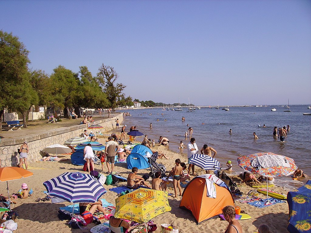A côté du port Ostréicole d’Andernos les Bains et de son église de St Eloi, on trouve une agréable plage de sable qui s’étend jusqu’au centre-ville. Très fréquentée en été, on y vient pour jouer sur le sable ou se faire bronzer à marée basse et se baigner à marée haute (on a pied très loin). Lorsque les coefficients sont très élevés, la plage peut complétement disparaitre pendant quelques heures.