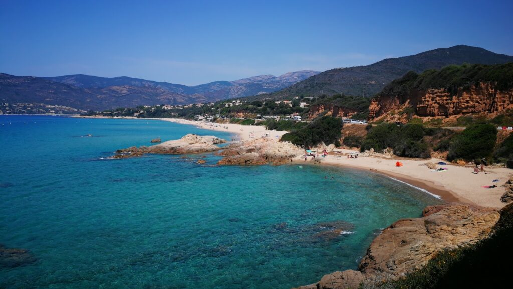 Pour se garer, on trouve des places de parking le long de la route. La plage est en contrebas.
