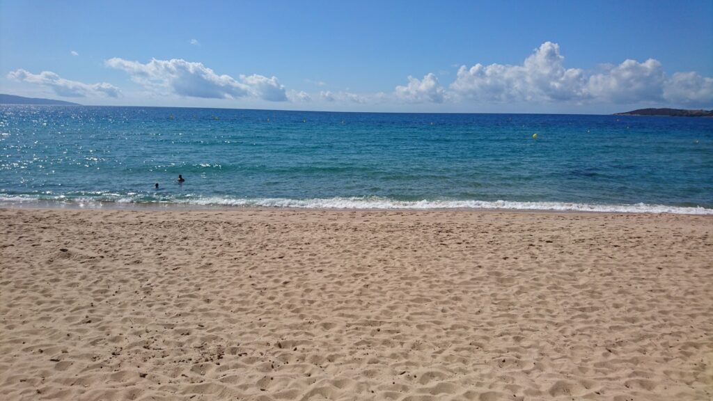 Revêtement de plage : Sable fin et lumineux. Fond marin – sable fin .