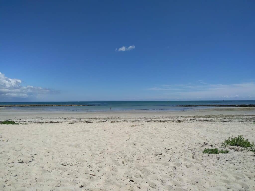 On apprécie l’environnement préservé avec une zone dunaire basse mettant à l’écart la route. Même en plein été, la plage est peu fréquentée (l’accès à l’Ile Tudy est un peu difficile, une seule route en impasse). Belle vue sur Loctury.