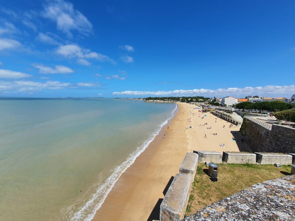 L’accès est facilité par des rampes d’accès (plage en contrebas de la promenade du bord de mer). Elle offre une magnifique vue sur le fort Vauban qui délimite cette plage. L’île Madame et l’île d’Aix se trouvent en face de cette plage.
