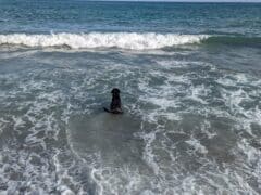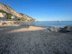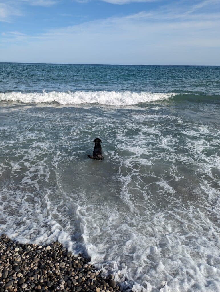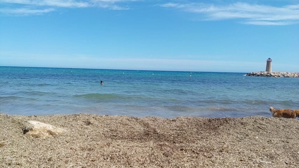 A la sortie de Menton en se dirigeant vers l’Italie, on trouve une petite plage où les chiens sont autorisés. Elle se situe juste après le port de Garavan et est accessible par quelques escaliers. Elle demeure agréable avec une belle vue sur les collines mentonnaises et sur les l’Italie. Par contre, elle est très proche de l’entrée du port.