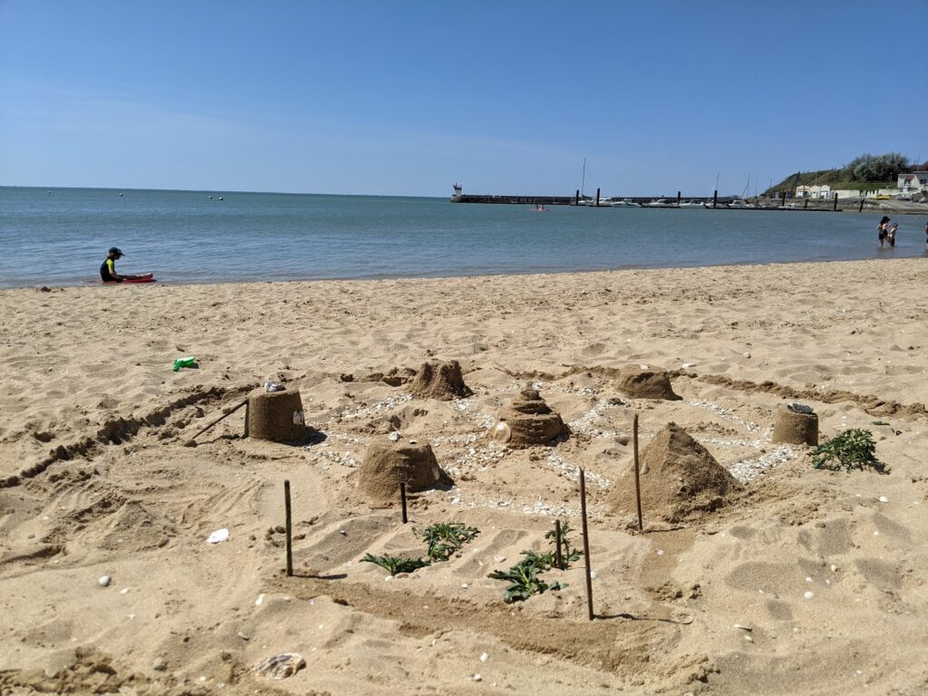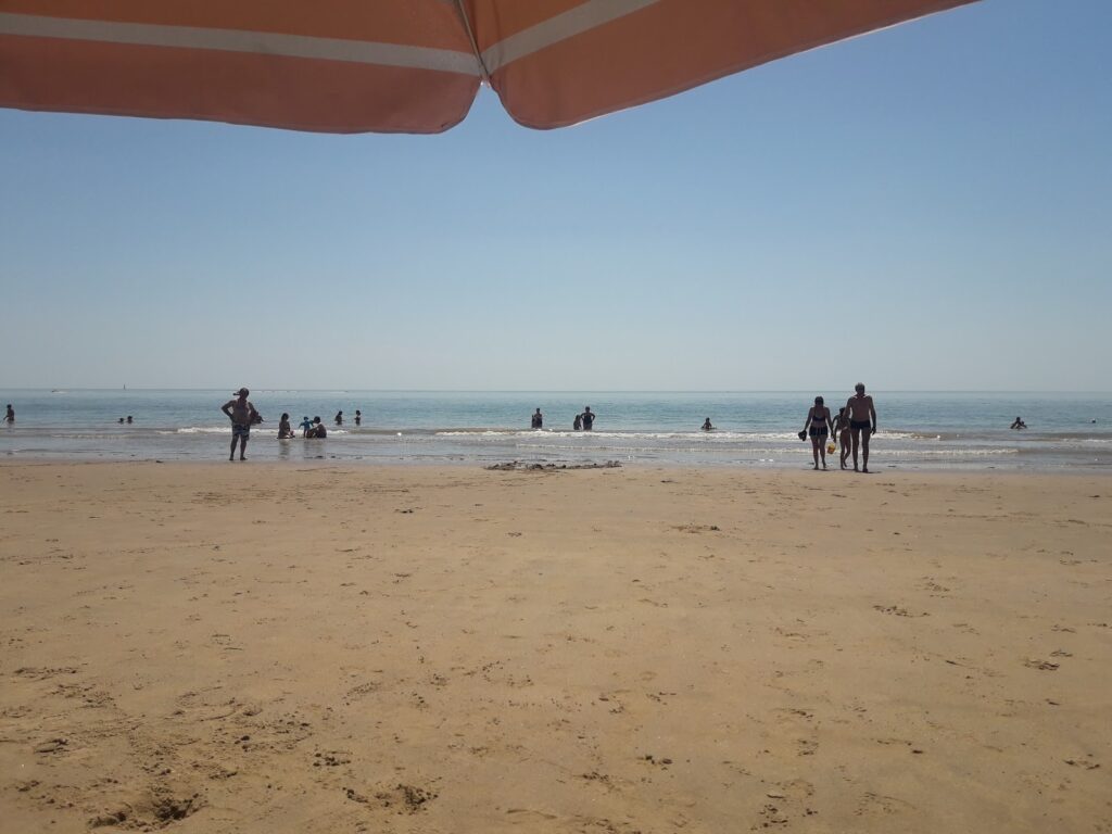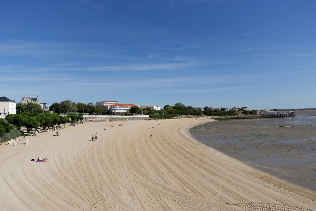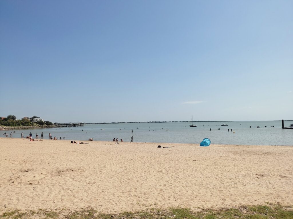 On peut même observer sur la gauche de la plage quelques cabanes ostréicoles.