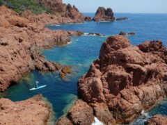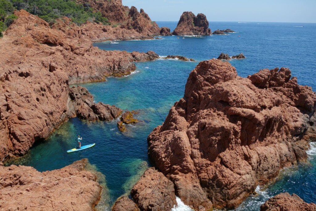 Pour vous rendre au Cap Dramont depuis St Raphaël, suivre la direction d’Agay par le bord de mer. Après la plage du Débarquement, dans le rond-point prendre à droite en direction du Port du Poussaï. Se garer dans cette rue. Au bout, au niveau du port, prendre sur la gauche. Au niveau de la plagette, on trouve des escaliers sur la gauche. Sur le sentier forestier, au croissement (on peut rejoindre la plage du Camp Long), prendre sur la droite. Au bout de la montée (la route principale part sur la gauche), on trouve un petit sentier qui descend en allant tout droit (voir nos photos) avec des escaliers. Les rochers se trouvent à 5 minutes.